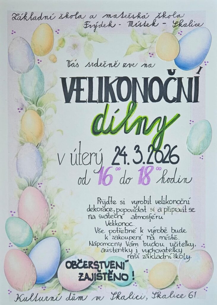 24. 3. 2026 Velikonoční dílny – odpolední akce pro rodiče s dětmi ZŠ+MŠ