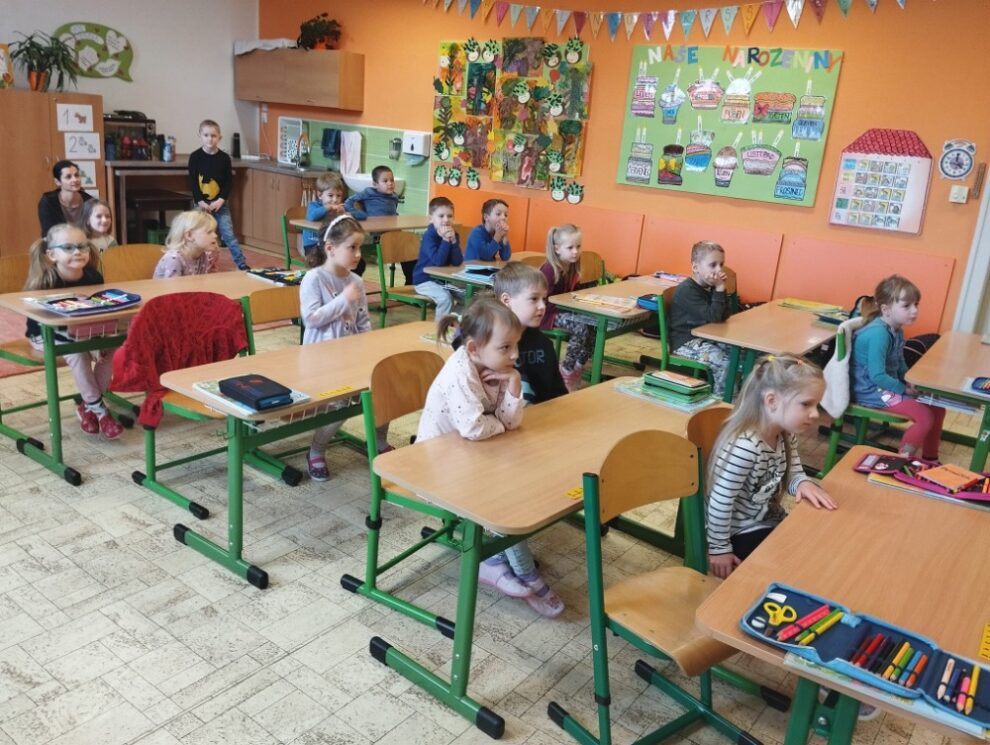 Děti z mateřinky na návštěvě u školáků